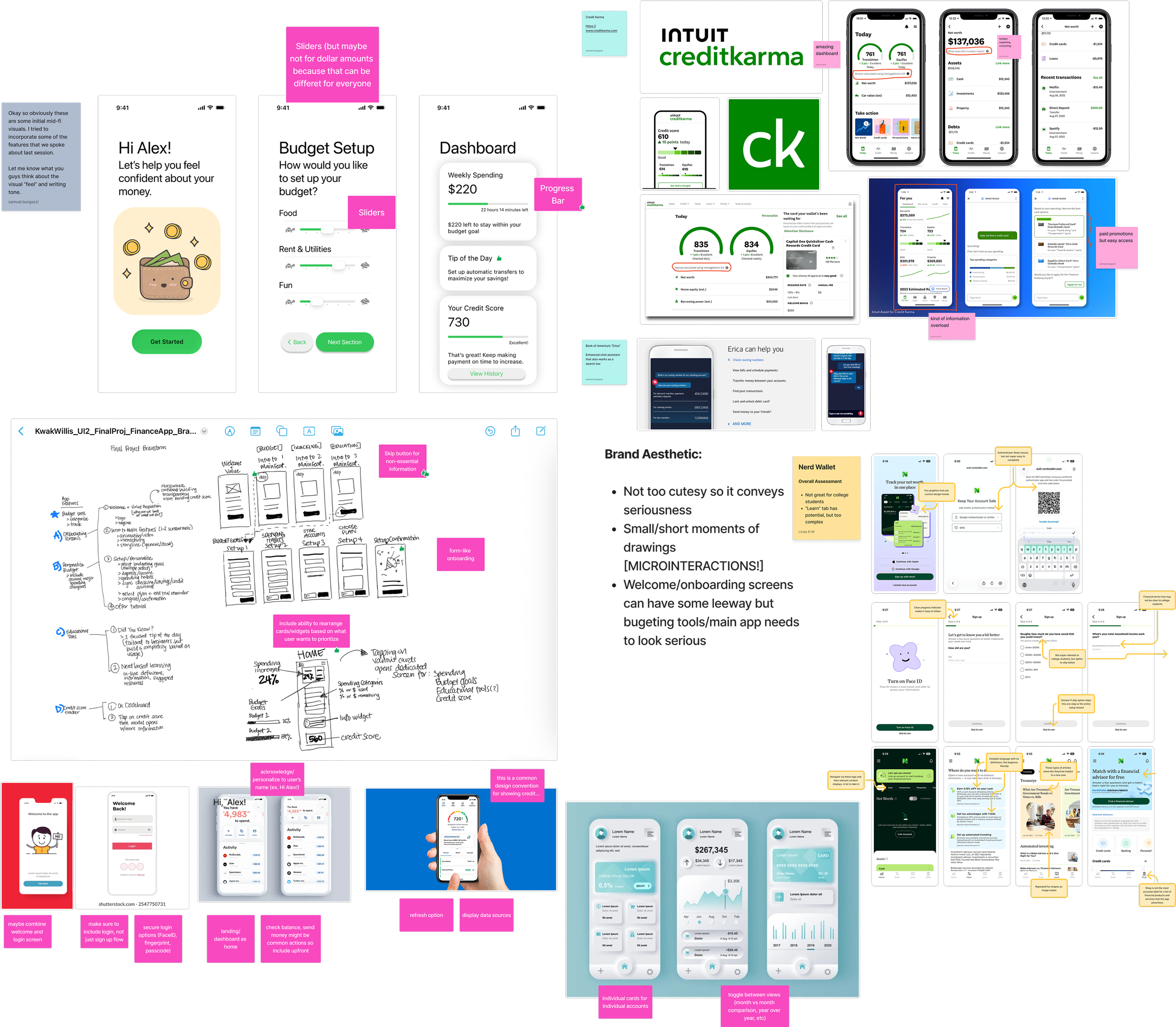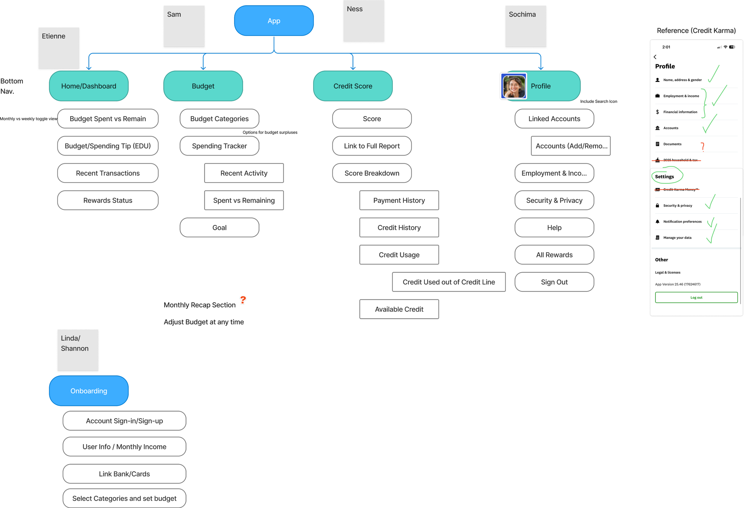 We had many promising ideas, including budgeting tools, credit score monitoring, rewards systems, linked accounts, notifications, and even an AI assistant.